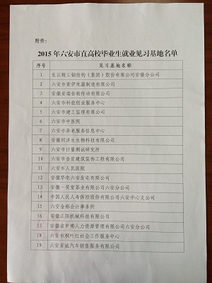 安徽正陽(yáng)機(jī)械科技有限公司榮獲“2015年六安市直高校畢業(yè)生就業(yè)見(jiàn)習(xí)基地”殊榮